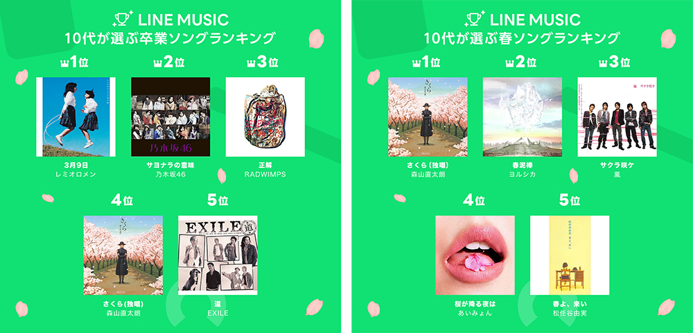 LINE MUSIC公式アカウントで10代男女に「卒業ソング&春ソングといえば?」というテーマでアンケートを実施した。