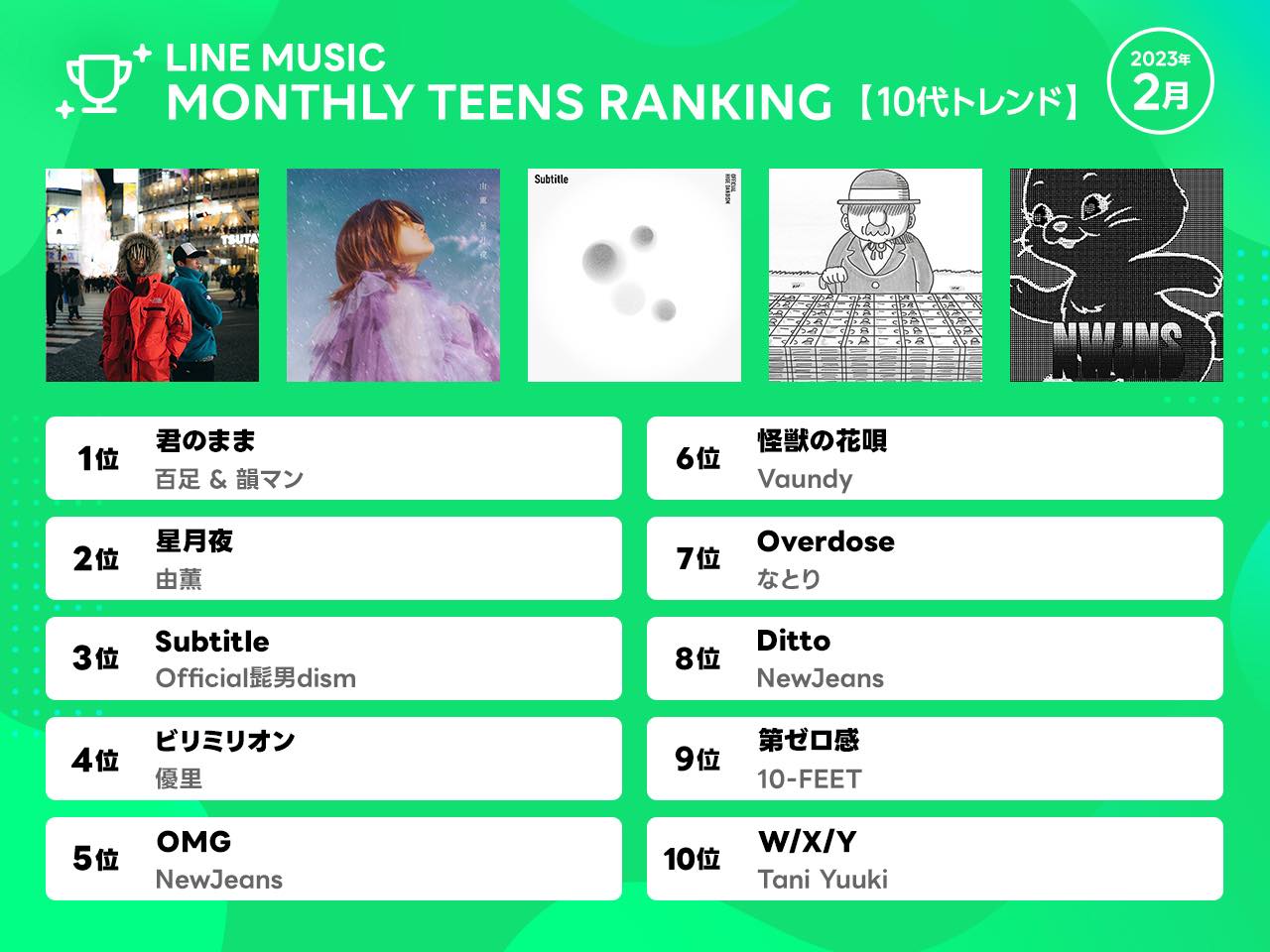 【10代トレンド】百足&韻マンが1位!時代とリンクした楽曲が目立つ2月度ランキング - 画像一覧(1/1)