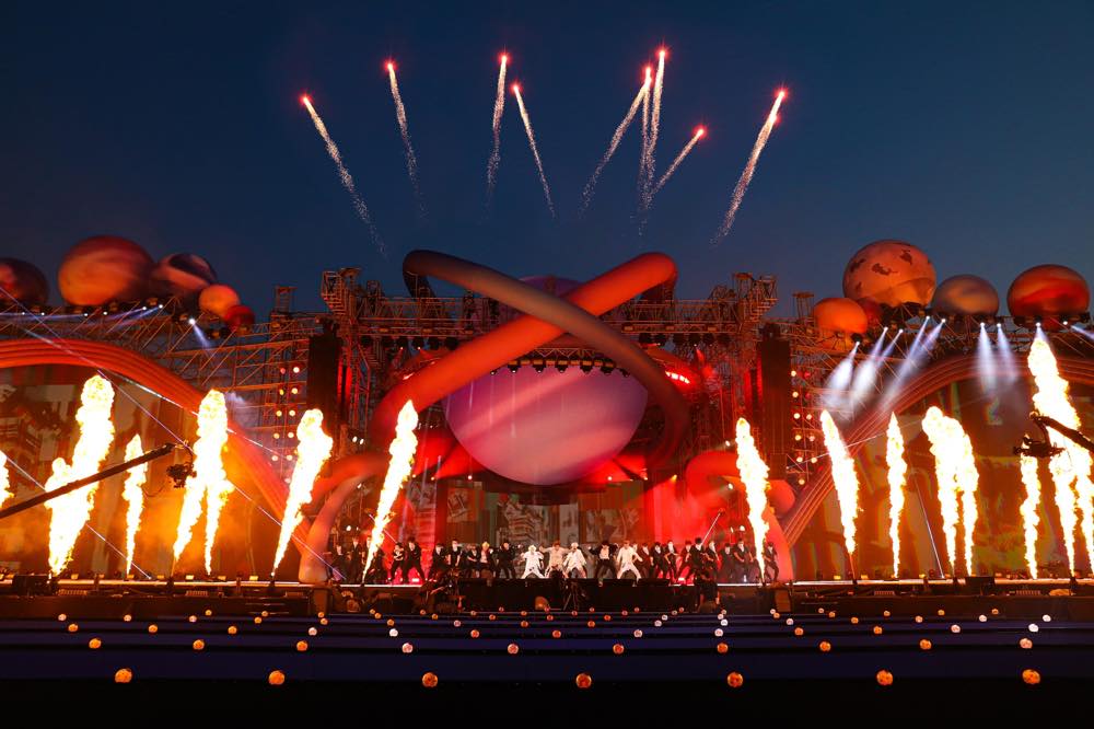広々とした野外に設けられた舞台セットは、「SOWOOZOO」という公演タイトルのように様々な惑星で飾られ、巨大な幻想の世界に来たような印象を与えている。デビュー8周年を記念して数字「8」を形象化した舞台は無限大嗜好の象徴まで含んで、さらに奥深い意味を暗示した。