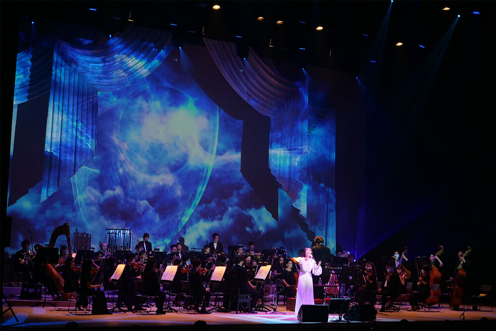 50%のキャパとなる約1,000人の前で、新曲 「鼓動」 や「MEMORIA」「IGNITE」などのヒット曲を含む全12曲をオーケストラアレンジで披露。圧倒的なスケールのサウンドをバックにしながら、それにも負けない、パワフルかつ繊細なパフォーマンスで大きな感動を呼んだ。