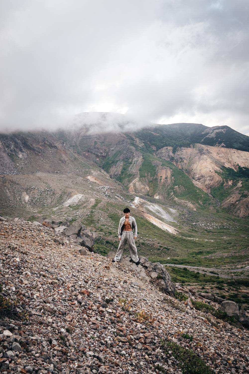 表紙は、Dean本人のセレクトで決定した、迫力のある上半身カット。無駄を削ぎ落し、彼の骨格に最もふさわしい形でつくり上げた筋肉の美しさ。強くしなやかに鍛えられた、胸筋、腹筋、上腕二頭筋の各パーツに、トレーニングのこだわりが反映されている。そして表4は、撮影地である福島県の浄土平(磐梯吾妻スカイライン)の雄大な景観を背にした精悍な姿。いずれも新生Deanを印象付ける、力強い佇まいに目を奪われるはずだ。