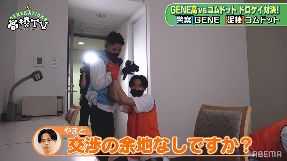 その後、人数合わせのため、今回特別に中務裕太がコムドットチームに加わることになると、やまとから「働いてくれそう」という理由で指名を受けた中務はやる気満々。こうして制限時間40分という限られた時間の中で、泥棒チームと警察チームに分かれたドロケイが始まると、残り時間によって立ち入り禁止のフロアが出てくるというルールのもと、コムドットはトランシーバーを使ってそれぞれ位置を確認したり、これまでの経験から抜群のチームワークでメンバーたちを追い詰める。そんなコムドットの猛勢に苦闘を強いられるなか、果たしてメンバーたちは見事勝利することができたのか……? この模様は「ABEMAビデオ」にて、放送後7日間無料で視聴できる。