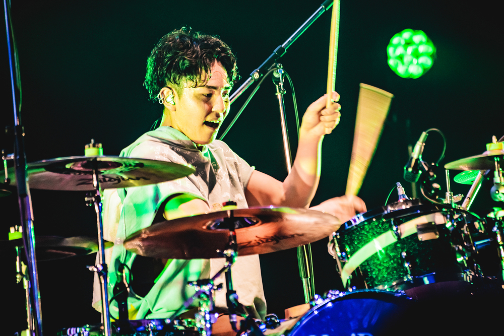 メジャー1stアルバム『開幕宣言』のリリースツアーファイナルでもある当日は、万全の感染症対策が施され、ソールドアウトとなった大阪城ホールにはこの日を待ちわびた約5,000人の期待が充満。そんな高揚感とシンクロするようなレーザービームが広大な空間を駆け巡り、まさにこれ以上ない1曲目「開幕宣言」からライブはスタートした。大舞台への緊張感はもちろんあっただろうが、楽しそうにドラムを叩くねぎ(Dr)をはじめ、それを超える喜びと充実感をメンバーの表情から感じる。