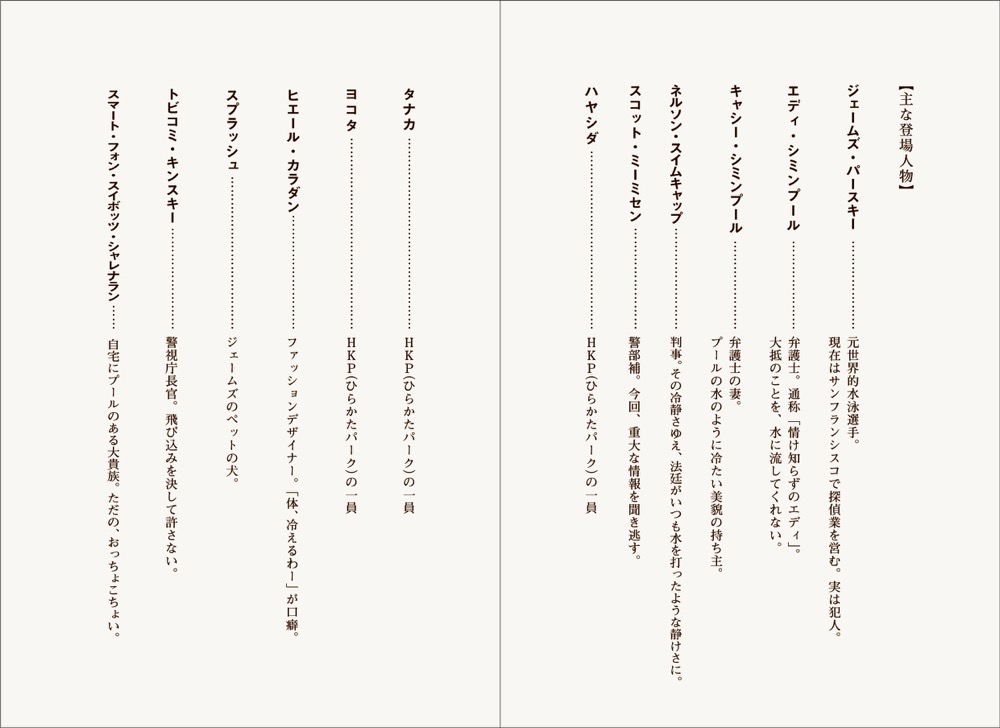なお、岡田園長がプールサイドで読んでいる本は、ひらかた文庫、ウォルター・スライダー著『監視員』。今回の撮影のために、文庫が書き下ろされた(!)。
