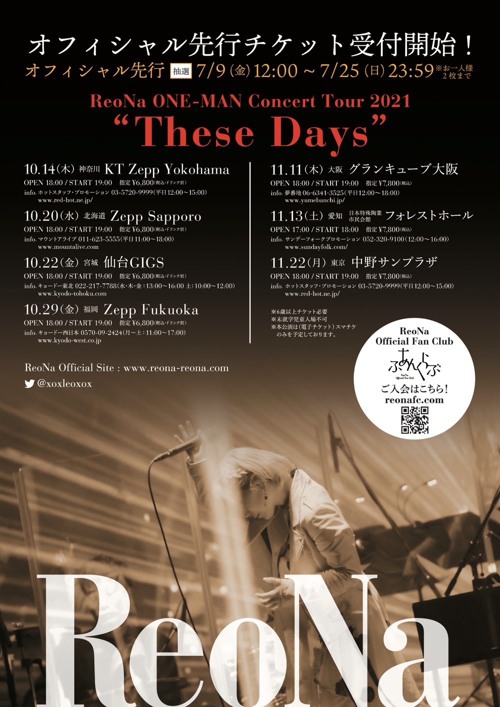 そして、今年の秋から全国7か所をまわるライブハウス&ホールツアー『ReoNa ONE-MAN Concert Tour 2021 “These Days”』の開催も決定。7月9日正午からチケットオフィシャル先行(抽選)受付中だ。