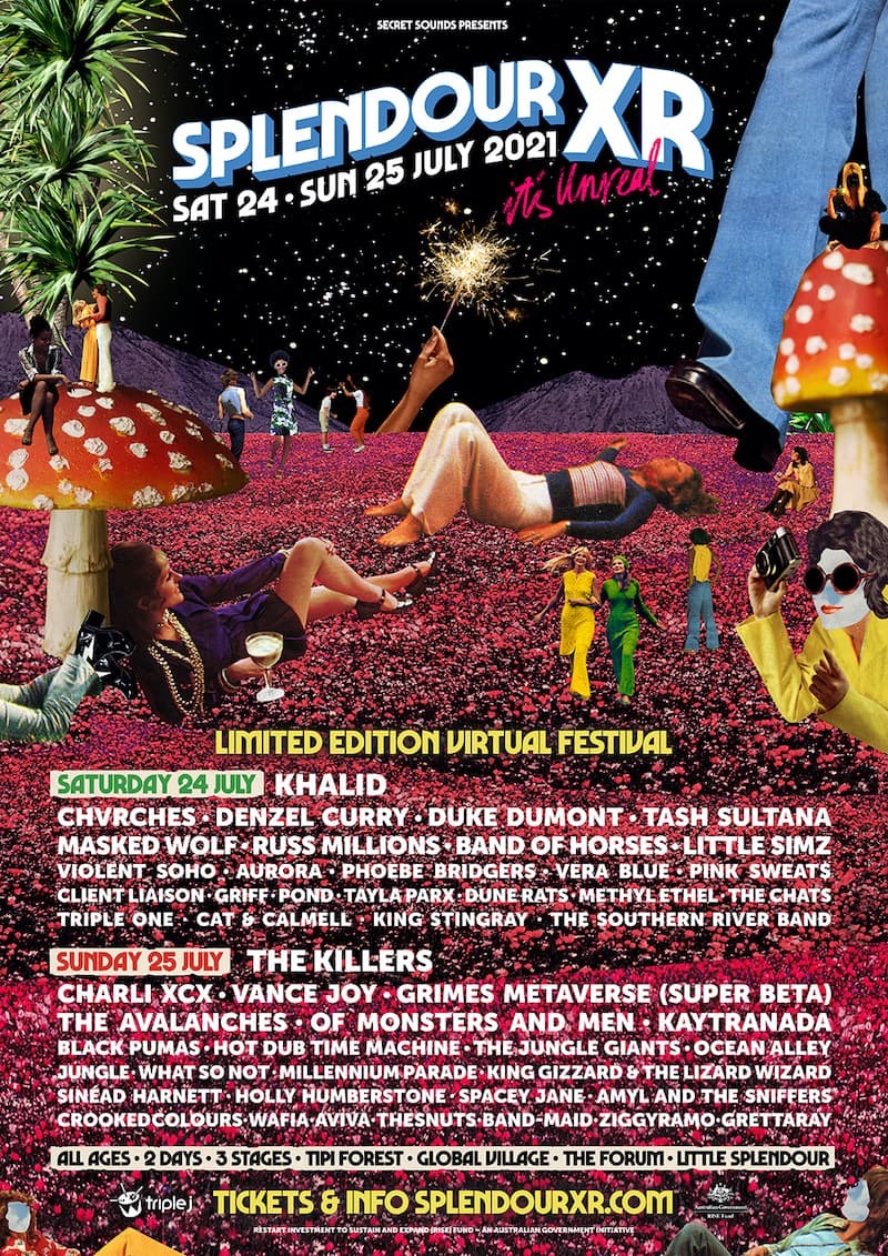 参加者は服装や髪型などをカスタマイズしバーチャルな自分を作りあげ、お気に入りのアーティストのライブを楽しむことはもちろん、『Splendour in the Grass』の会場であるバイロンベイが再現された美しい会場内を探索することもできる。2日間にわたり50組以上のアーティストが未公開のライブセットを披露した。