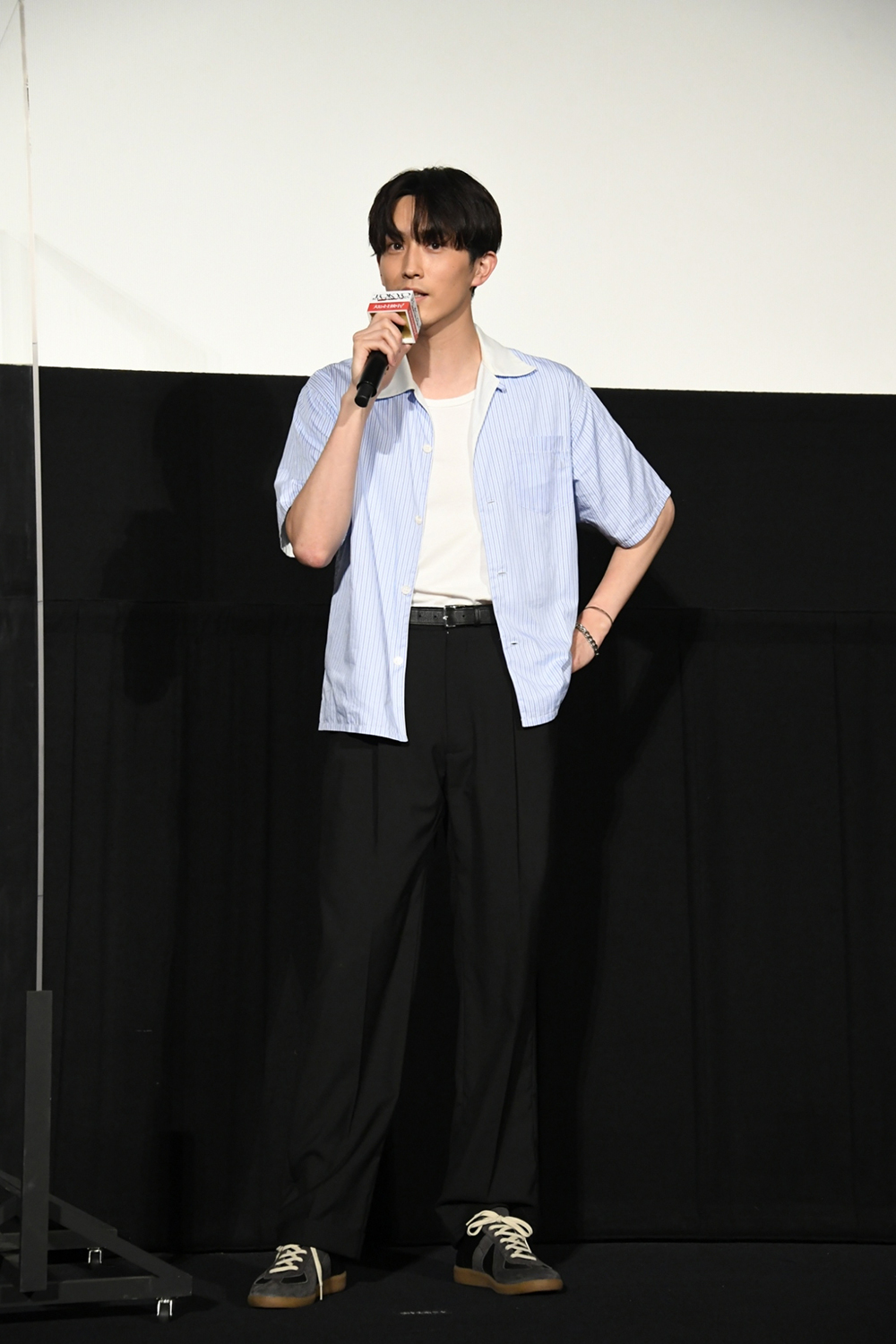 なぜか事前に「仲間と観に行く」という設定が伝わっていなかった杉野は、「デートに行く設定」で衣装を選んだ告白。自身がチョイスしたきれいめのシャツスタイルについて「ミスった(笑)。本当は普段は白Tにチノパン、ジーパンとか楽なスタイルなんですけど」と話した。