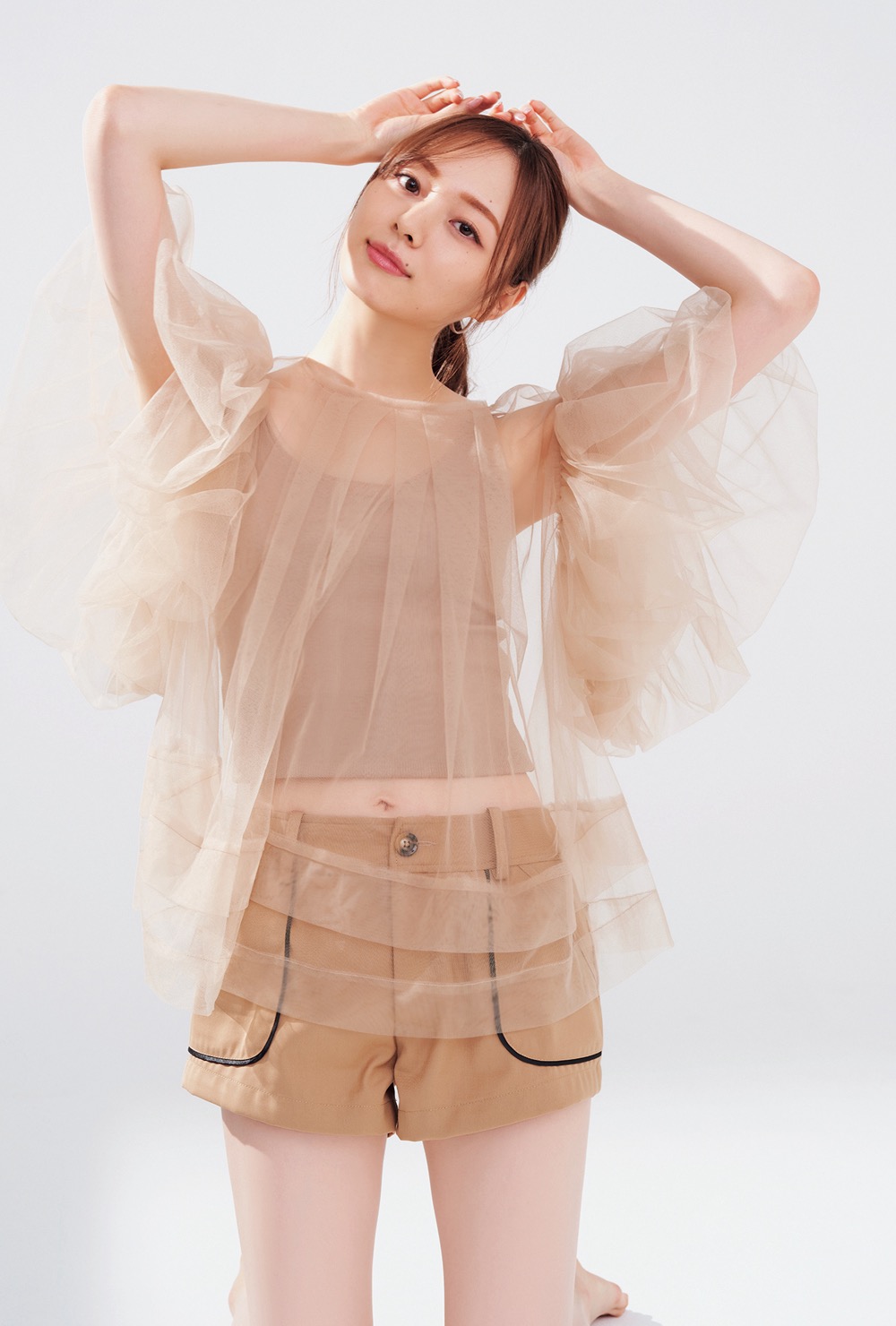 撮影テーマはもちろん「Beauty」。ハイセンスな衣装を着こなしながら、美しい素肌を惜しげもなく披露。キャミソール衣装での華奢なデコルテや、肩、へそ出しコーデのくびれボディ、ワンピースやショートパンツからのぞく圧倒的美脚などなど、アイドル界トップクラスのスレンダーボディを堪能できる仕上がりになっている。