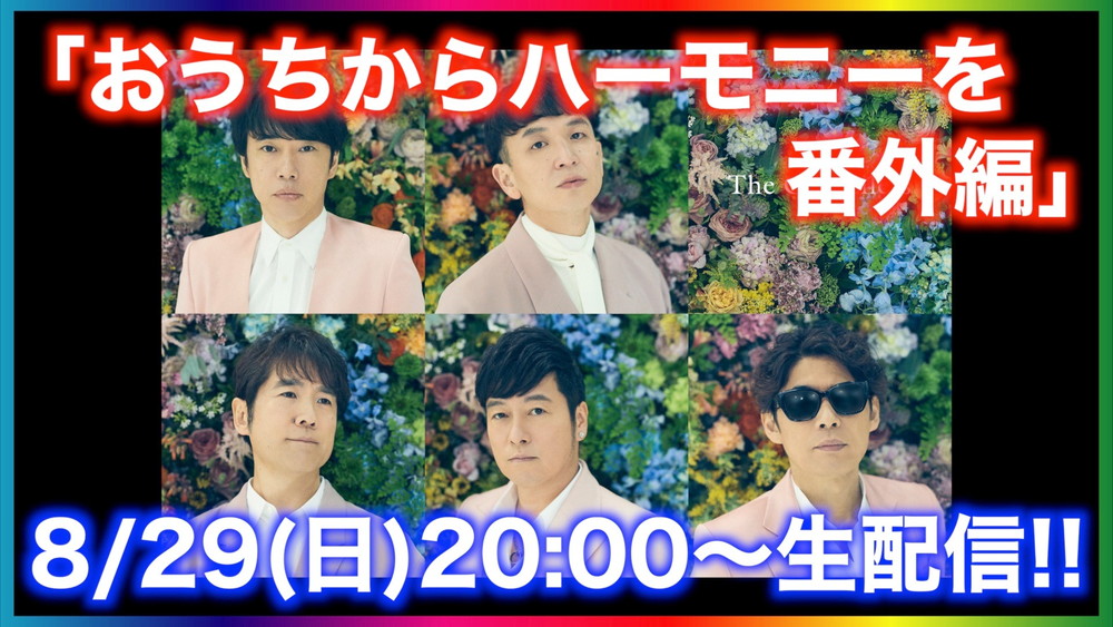 8月23日から開催予定だったゴスペラーズのファンクラブツアー『GOSMANIAファンの集い2021』が新型コロナウイルス感染拡大の影響で中止となってしまったゴスペラーズだが、8月29日20時からオフィシャルYouTubeチャンネルで『おうちからハーモニーを 番外編』と題したYouTube生配信トーク番組がオンエアされることが決定した。