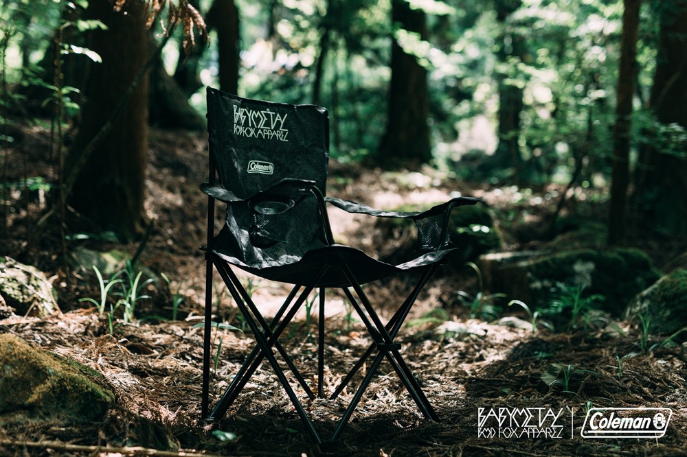 今回のコラボアイテムは、“BMD FOX APPAREL”のブランドカラー「BLACK」を軸に、フレームや樹脂パーツのカラーも別注で真っ黒なアウトドアアイテムに仕上げた仕様。ハンモックに包み込まれるような座り心地でリラックスできるヒーリングチェア、折りたたんでコンパクトに収納できるミニテーブル、コールマンの代表的ギア、アウトドアワゴンなど、機能性はそのままで“BMD FOX APPAREL”らしくスタイリッシュに。そんなクールなデザインが音楽フェスやアウトドアだけでなく、あらたな生活様式にもフィットする。ファンならずとも要チェックだ。