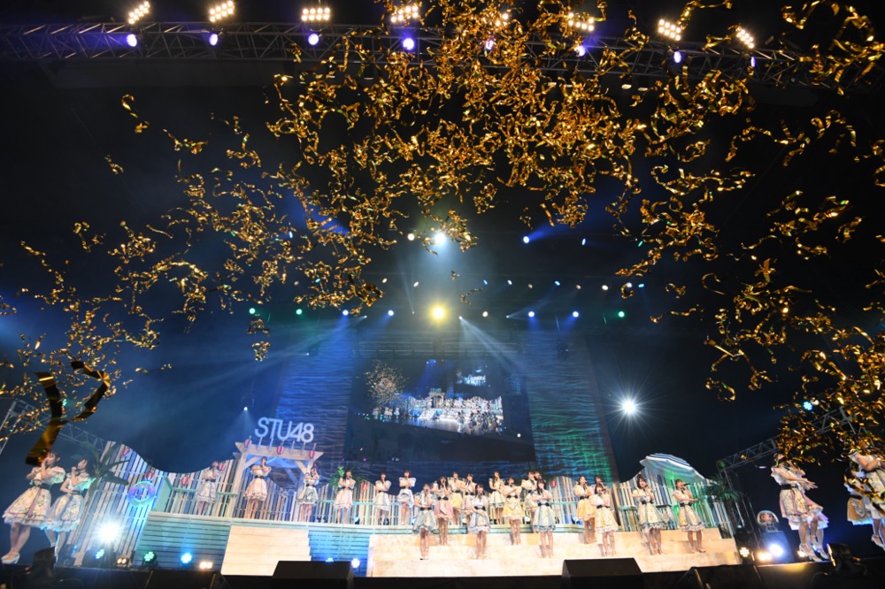 そして、最後は岡⽥奈々から兼任解除の発表が。「⽴ち上げからかかわってきたSTU48を離れるのは寂しいです。伝えたいことはいっぱいありますが、STU48は私にとってずっとずっと⼤切な宝物です」とファンへ思いを伝えた。すでに解任を知っていたはずの甲斐⼼愛は、悲しさが隠しきれない様⼦で「本当に解任なん?」と何度も問いかける部分も。岡⽥は「奈々だけに7枚⽬シングルも全⼒で頑張ります」と締めて幕を閉じた。