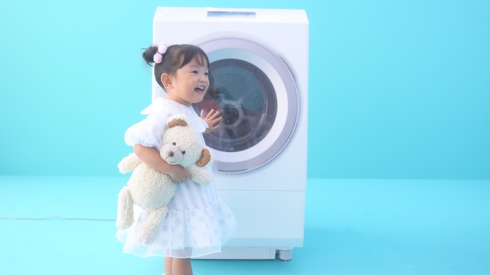 その後も、休憩時間になるたびにZABOONに駆け寄り「まだまわってるよ~」と洗濯・乾燥の様子が気になっているよう。洗濯機のドラムの回転と合わせてぬいぐるみを回してみたり、乾燥まで仕上がったタオルに「あったか~い」と感動したりとZABOONに釘付けの様子だった。