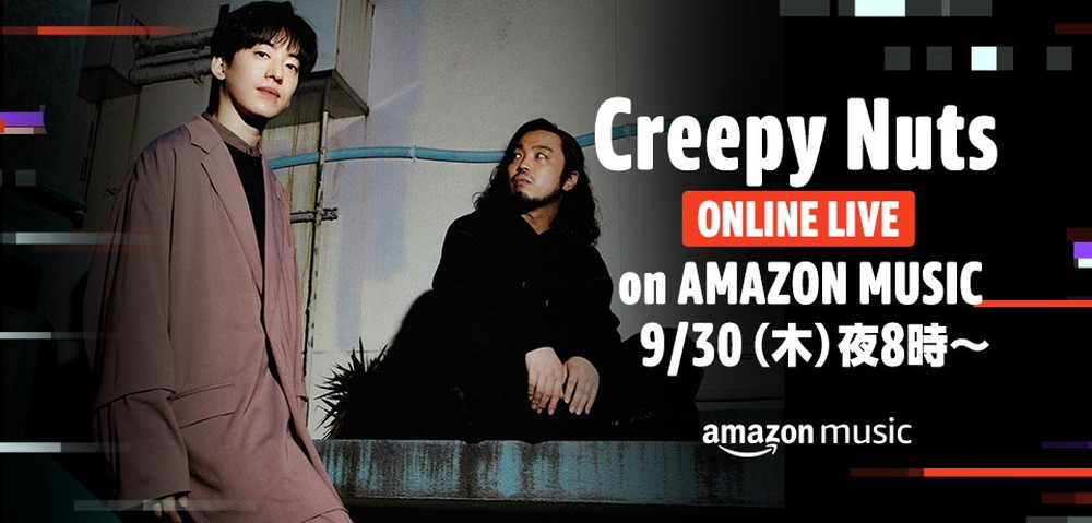 9月1日にニューアルバム『Case』をリリースしたばかりのCreepy Nutsが、ライブイベント『Creepy Nuts ONLINE LIVE on AMAZON MUSIC』を開催。 9月30日20時からTwitch上のAmazon Music Japanチャンネルでライブ配信される。