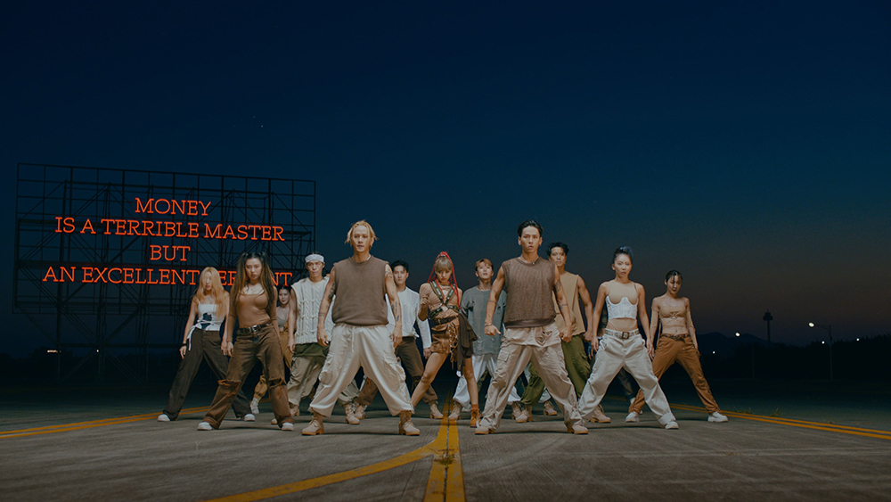 今回のビデオは、YGの自主制作映像となっており、巨大なLED画面と華やかなビジュアルエフェクト、広大な滑走路が広がる野外背景に転換される構成などは一般的な振付映像では見られないレベル。「エクスクルーシブ(Exclusive)」という特別な修飾語がつけられているのも納得だ。