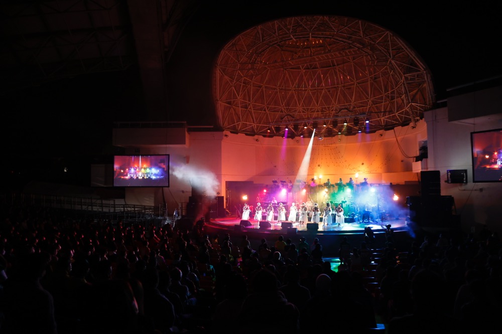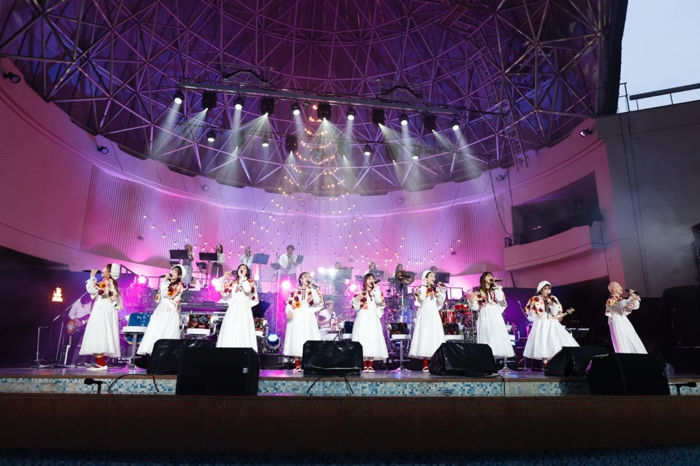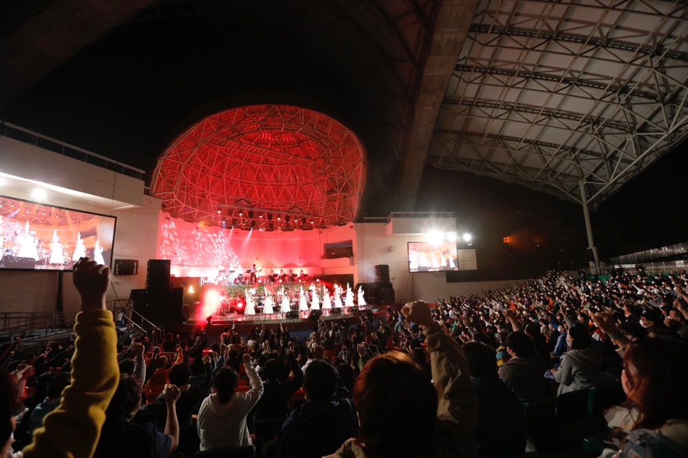 秩父ミューズパーク野外ステージにつめかけたファンも待ちに待った9人のパフォーマンスに、声は出せないものの、手を上げたり、拍手などのリアクションで応え、会場のあたたかい一体感を作っていった。