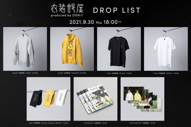 「衣装部屋」のアイテムは、DISH//オフィシャルファンクラブ「皿組GOLD」会員限定のオンラインストアにて、9月30日18時より発売開始となる。詳細は、オフィシャルサイトでチェックしよう。
