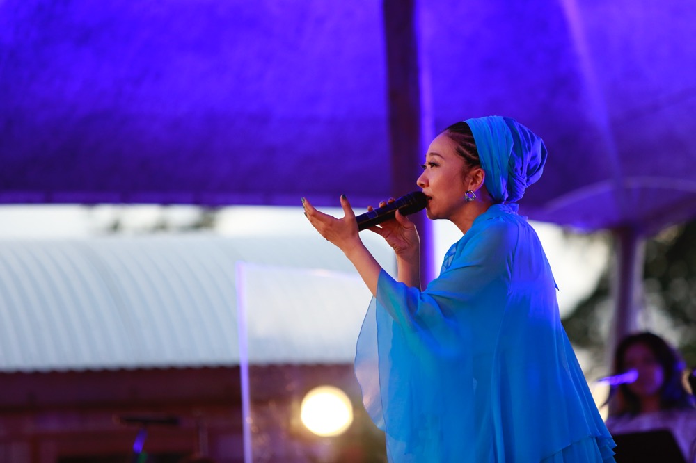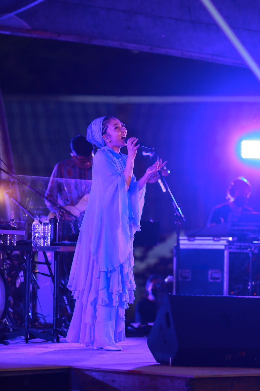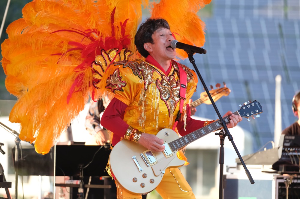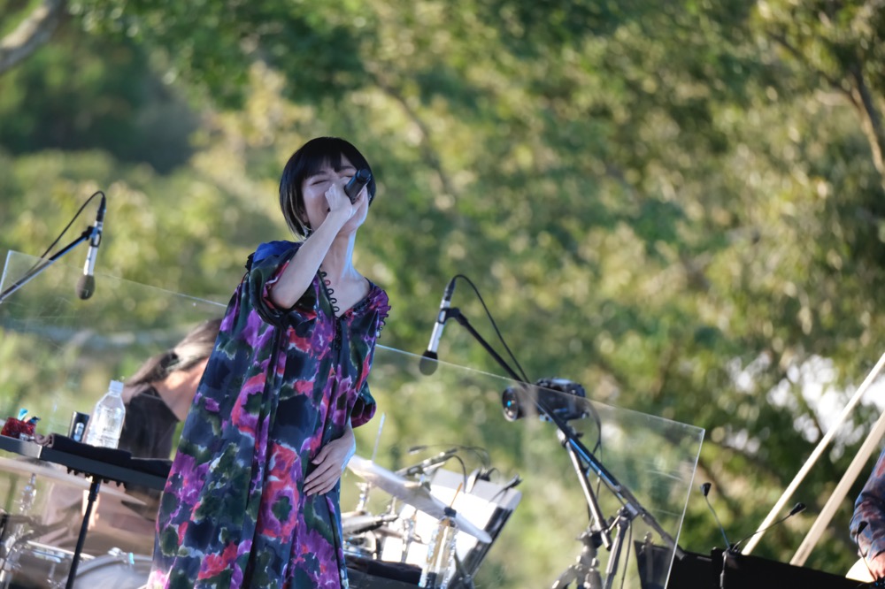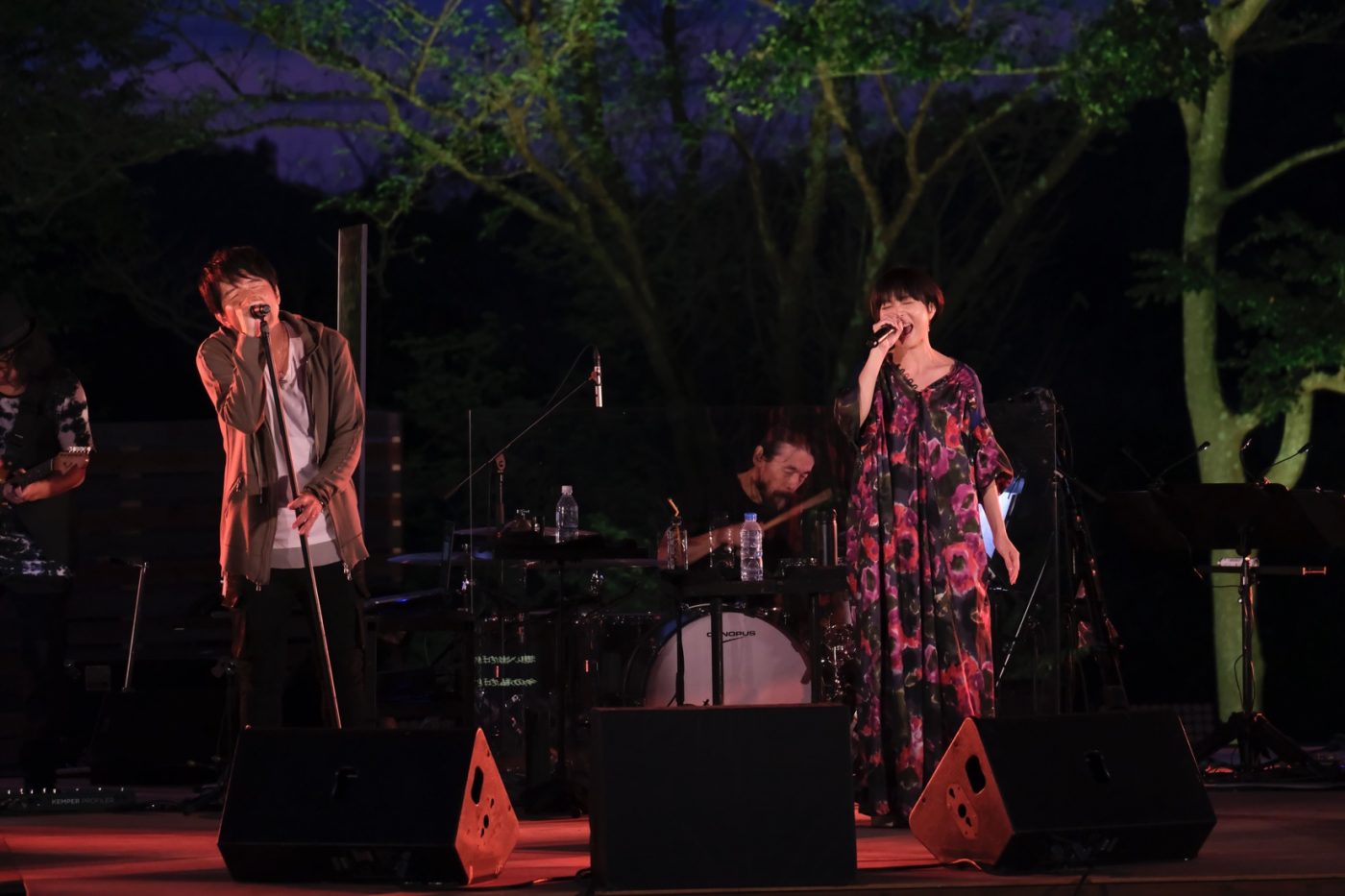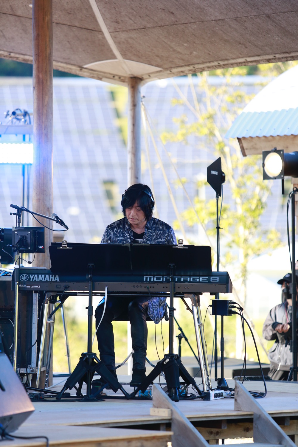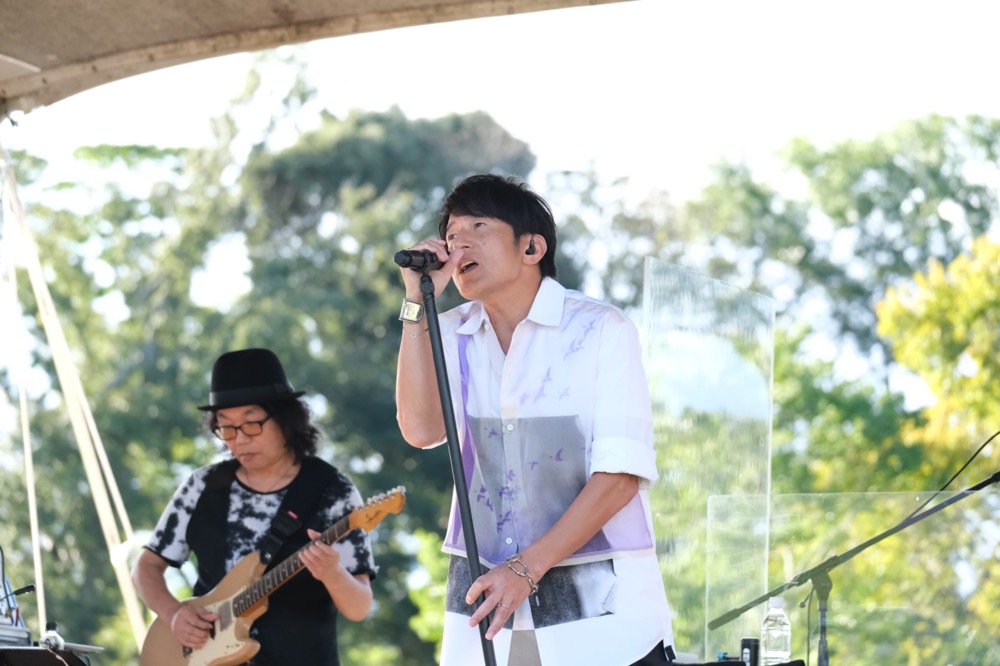 KURKKU FIELDSの緑豊かな風景が映し出された後、イベントは後半へ。まずは宮本浩次が「異邦人」(久保田早紀)を熱唱。さらにエレファントカシマシの楽曲、ソロ曲「P.S.I love you」を全身全霊のステージングで披露した。続くMISIAは、「アイノカタチ」「歌を歌おう」をパフォーマンス。美しい夕闇のなかで届けられた、愛に溢れるメッセージとドラマティックな歌唱はまさに絶品だった。