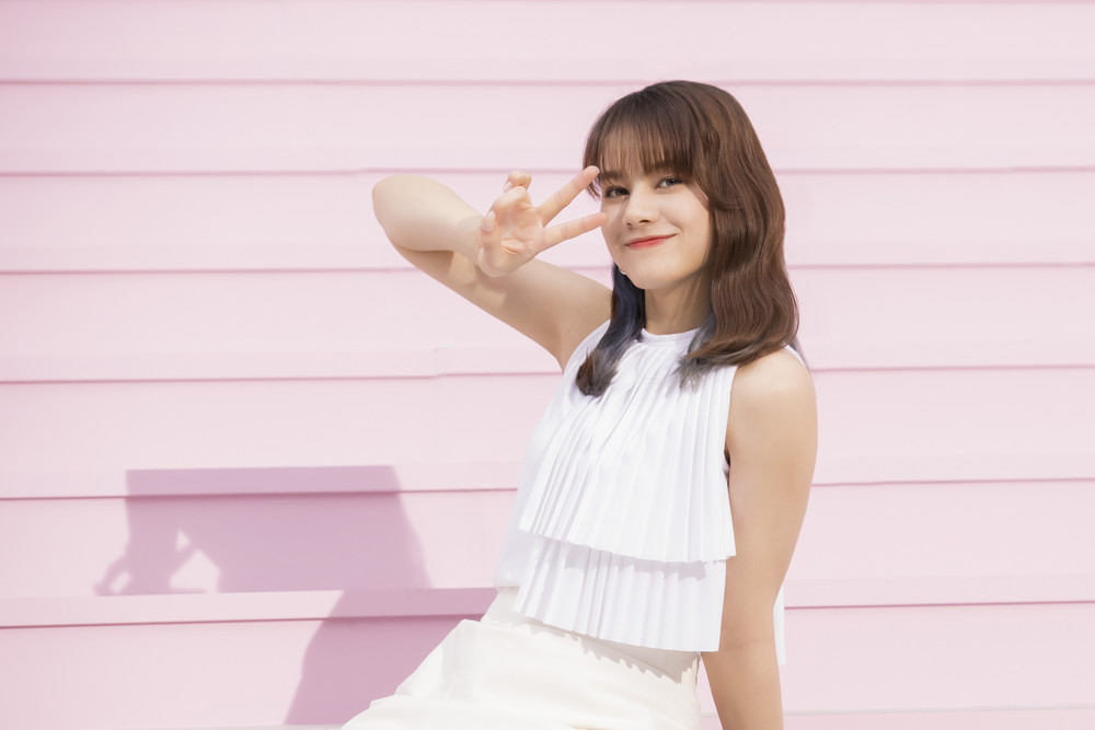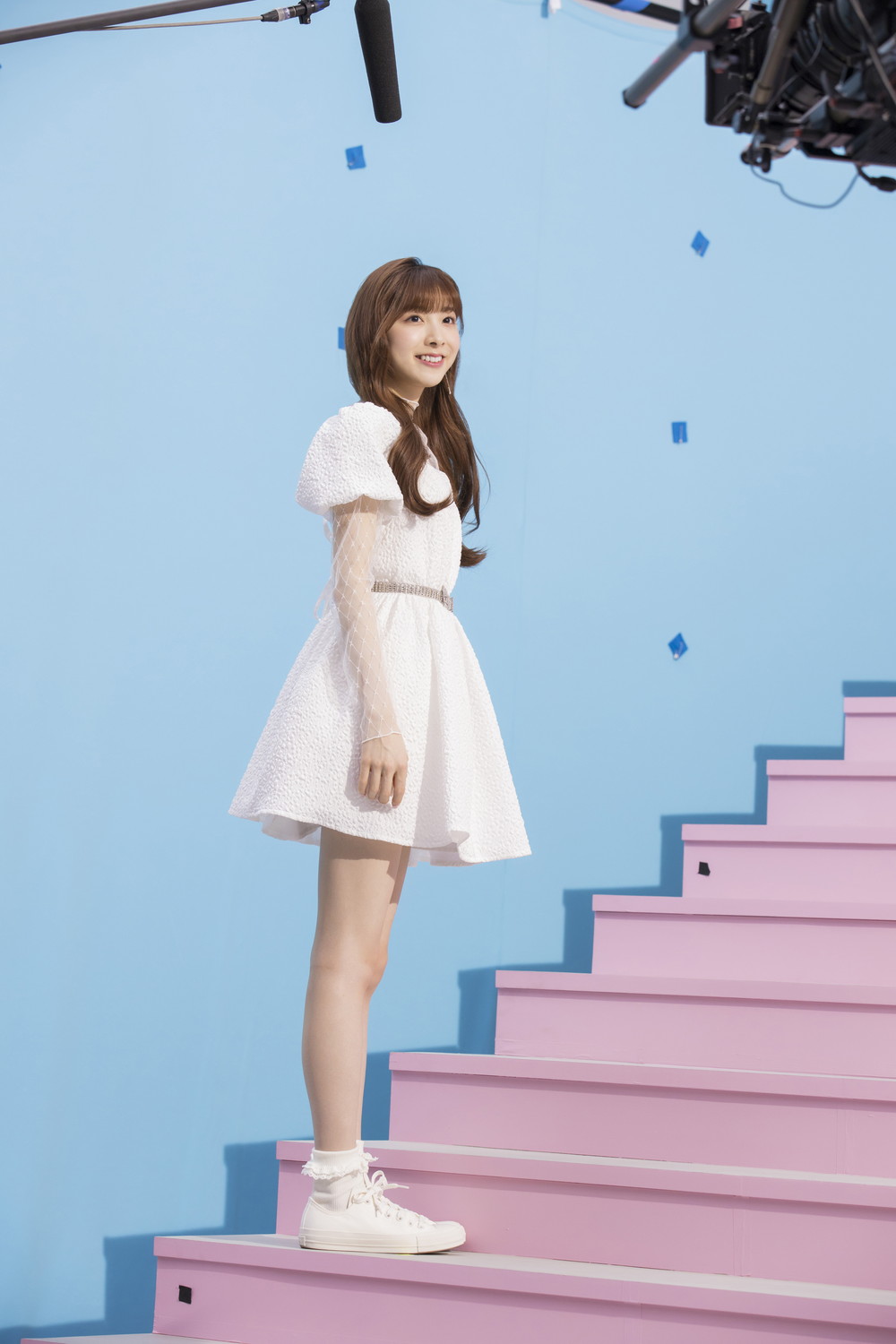 フェイスパックのイメージキャラクターにならせていただくのもすごいうれしいですし、こうやって真っ白い衣装を着て清楚な感じで撮影ができているのが、すごい楽しいです。9人全員で真っ白い衣装を着ているんですけど、そこがいちばんポイントじゃないかなと思います。すごく白が好きなのでお気に入りですし、こういったワンピースはあまり着たことがなかったので新鮮でかわいくてお気に入りです。■MAKO