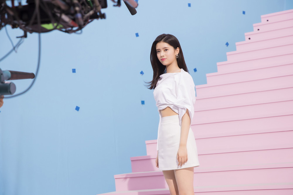 「おはようございます!」と純白の衣装を着たNiziUメンバーがスタジオに元気に登場。パステルピンクの大階段の上で、9人揃って「WE NiziU! おはようございます。NiziUです。よろしくお願いします!」と元気に挨拶し、まずはメインカットの撮影からスタートした。撮影の合間ではメンバー同士で会話を楽しみ、時にはメイキングカメラに向かってチャーミングな姿を見せるなど、リラックスした雰囲気のなか、順調に撮影が進んでいった。