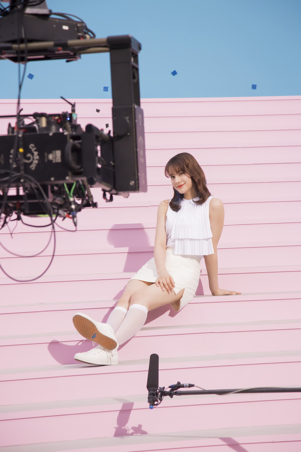 高さ5メートルほどの大階段のなかでも高い位置で撮影を行った3人。高所による緊張も吹き飛ばし、終始笑顔で仲睦まじい様子が印象的だ。撮影の合間、3人で仲良く談笑しているとRIMAがツボに入ってしまい笑いが止まらなくなってしまうというお茶目な一面も。一方、1回カットがかかるごとに3人で映像を振り返り、「今の良い感じじゃない!?」などと振り返るプロの一面も見られた。