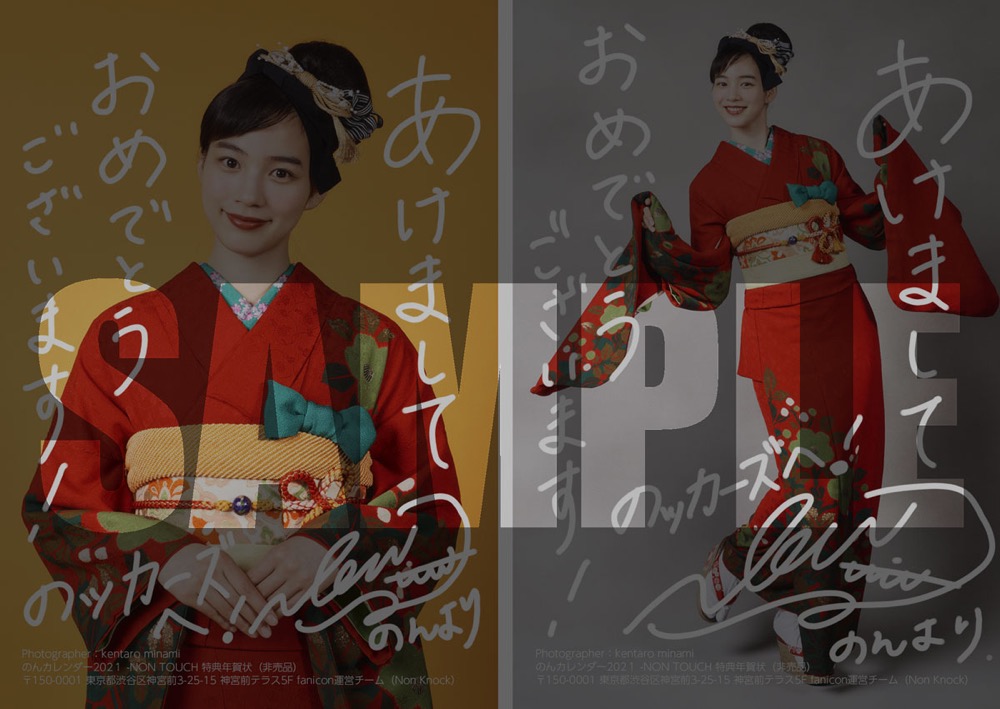 のん公式ファンクラブ「Non Knock」では、毎年恒例の「お正月に年賀状が届く!」特典付きとなる(卓上、大判で年賀状デザインが異なります)。