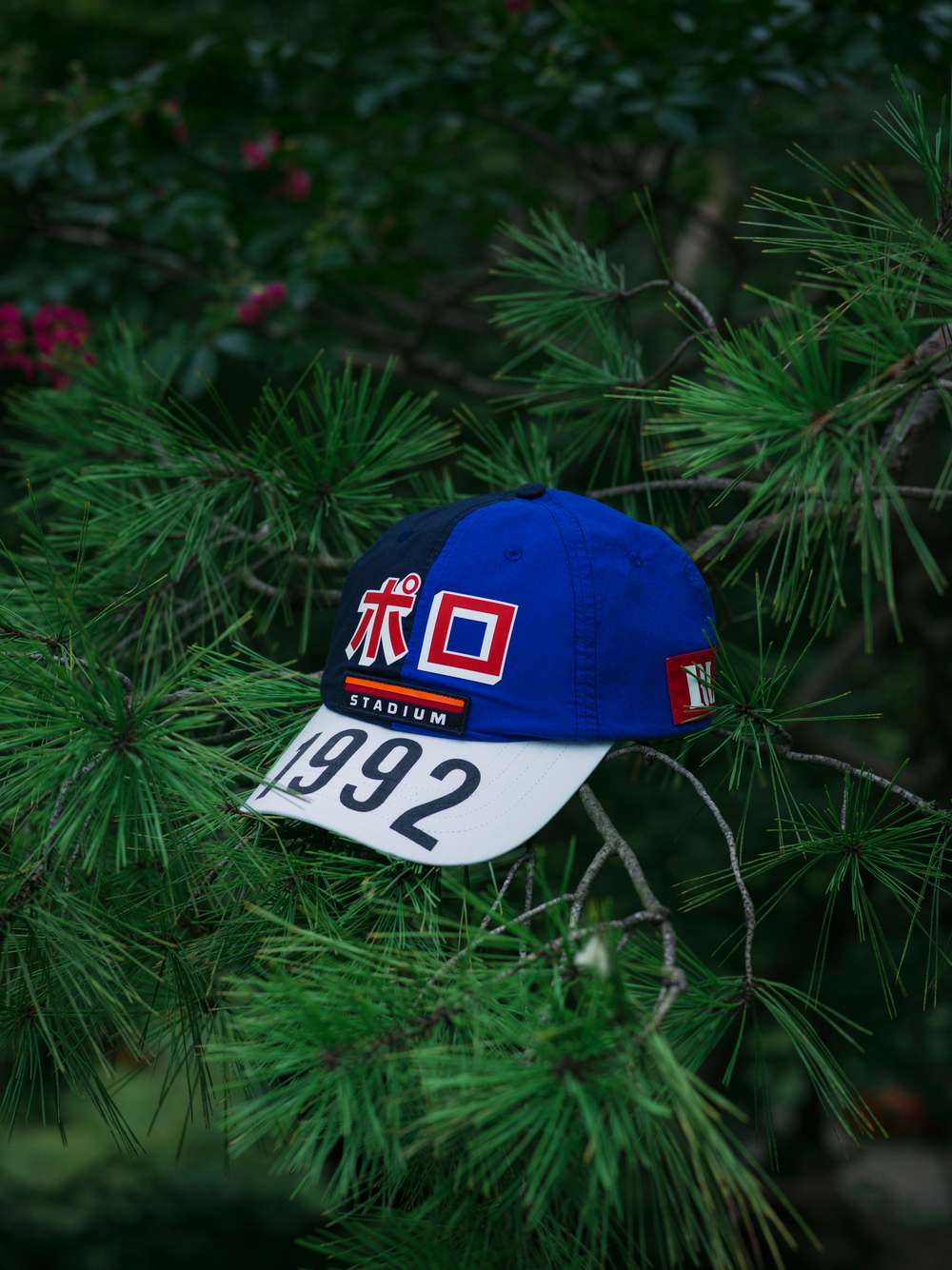 他にも、カタカナとスタジアムロゴが施されたフルジップアウター、ポロシャツ、パーカーが登場。コレクションには同じ日本の美学とスタジアムのアイコニックなモチーフをあわせもったウエストパック、マルチパウチバック、リストバンド、トートバック、靴下、バケットハットがラインナップされる。