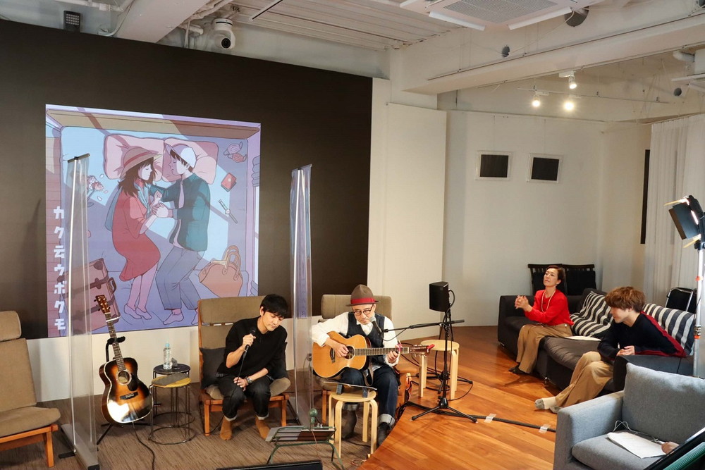 10月27日、「『カク云ウボクモ』配信リリース記念!MUSIC VIDEO先行上映会」と題したYouTubeでの生配信イベントが、東京・代官山にある映画館シアターギルドにて開催。森山直太朗、スペシャルゲストの柄本佑、司会のクリス智子が登壇した。