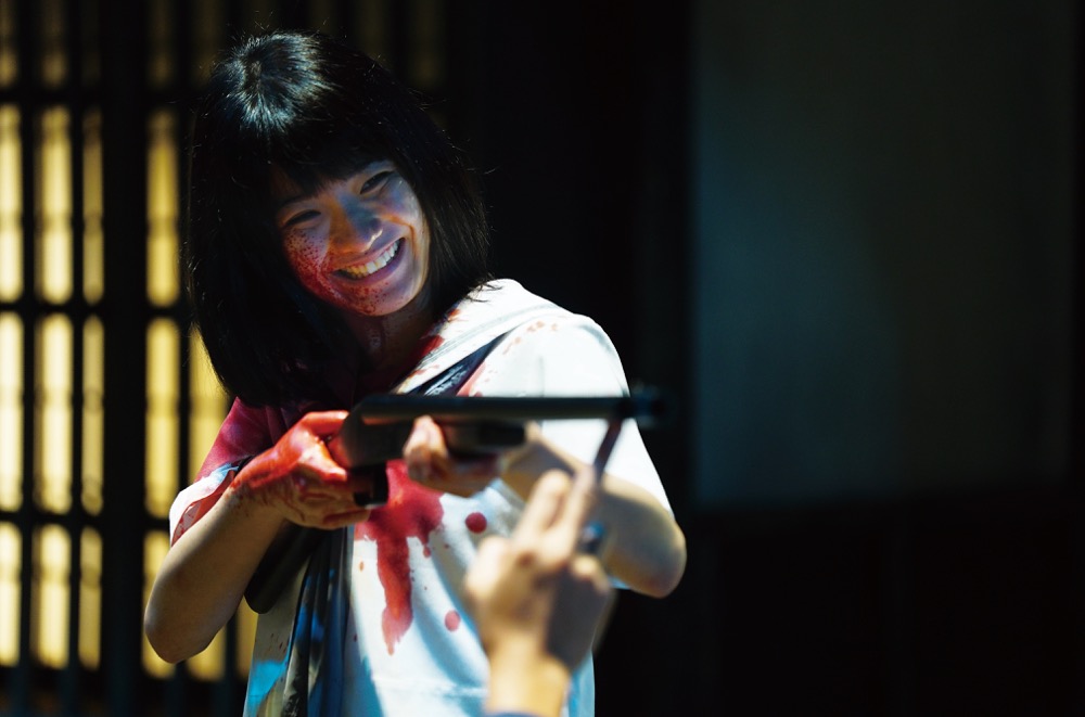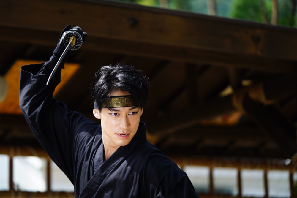 今回公開されたのは、異様な雰囲気を漂わせる新場面写真9点。観光客にショーを見せる忍者キャストとして働く主人公・立石(ディーン・フジオカ)と、過去のトラウマから隠していたバイオレンスな部分が解放されていく中で見せるもうひとつの立石の様子や、血だらけのセーラー服に身を包み、なぜか笑いながらショットガンを持つ少女・アユミ(蒔田彩珠)の姿、さらにはアユミを危険に晒そうとヤクザとともに計画している県議・黒崎(別所哲也)やそのヤクザ長山組に所属する陣内(坂口征夫)。そんなアユミを救おうとヤクザの元へ乗り込む立石と陣内が刀を交差している姿など、ただならぬ狂気を感じさせる写真となっている。