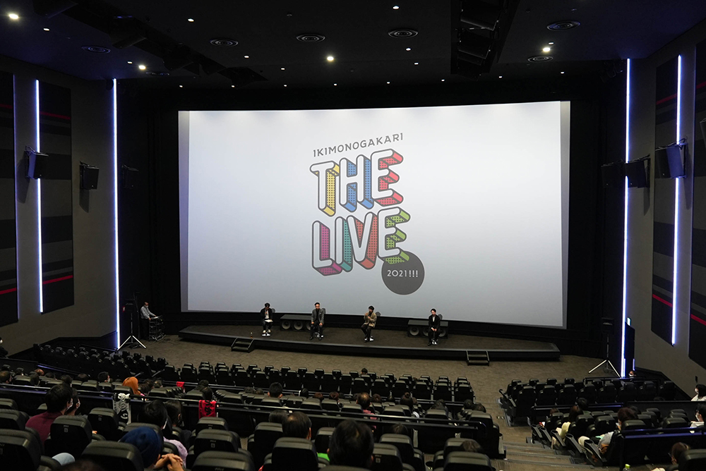 そのBlu-rayディスクに搭載されている立体音響技術「Dolby Atmos(R)」を体験できるイベント『「いきものがかりの みなさん、こんにつあー!! THE LIVE 2021!!!」Dolby Atmos体験上映会』が10月30日に千葉・イオンシネマ幕張新都心で行われた。