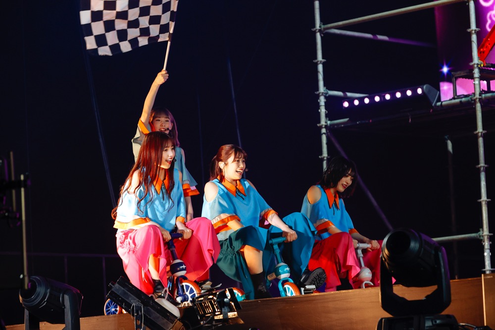 黒いMV衣装に着替えたメンバーは、この日いちばんの爆発力で激しいダンスを披露。曲中では不敵な笑みを浮かべる場面もあり、改めて彼女たちの身体能力の高さや表現力の豊かさに驚かされる。曲後半では火花が吹き上がる派手な演出も加わり、クライマックス感をあおることに。パフォーマンスを終えると、田村が再び拳銃を手にし、空に向けて一発放つとメンバーはステージをあとにした。その後、スクリーンには映画さながらのエンドロールが流れ、ライブはいったん終了。