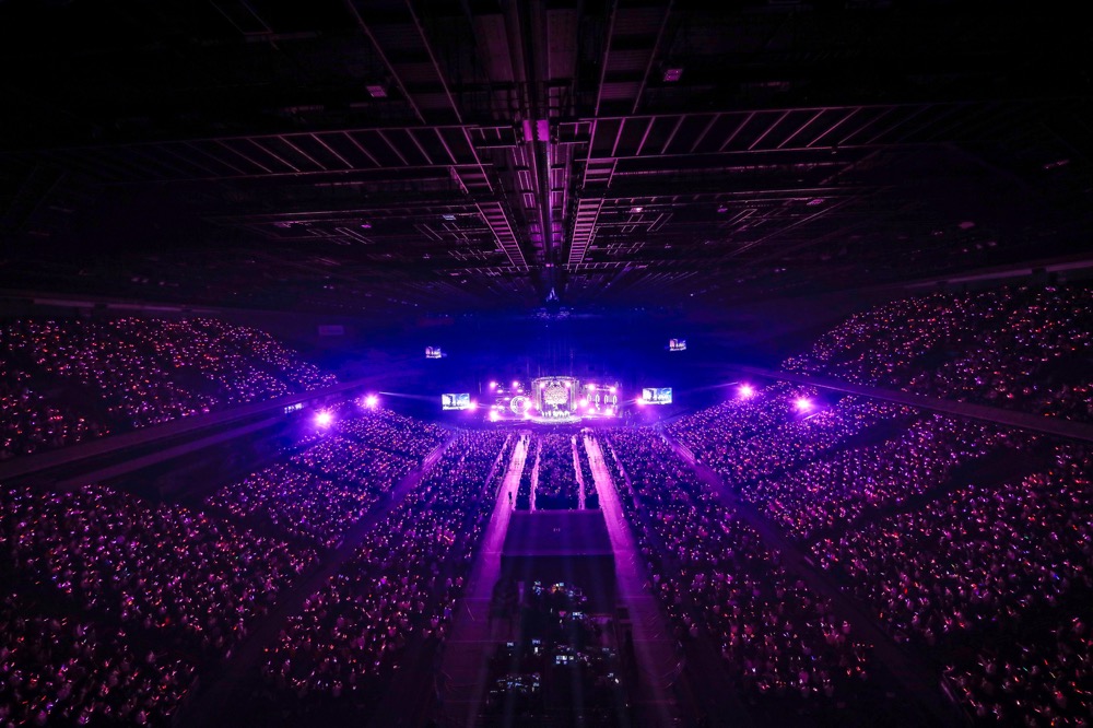 興奮冷めやらぬなか、アンコールは渡邉理佐センターの「無言の宇宙」から開始。ステージ後方まで広がった星空のような照明演出を背に、和装風のMV衣装を身にまとったメンバーは、繊細さを伴うダンスで華麗さを表現。サビではスクリーンに花火も打ち上がり、穏やかななかにもエモーショナルさが感じられる世界が展開された。