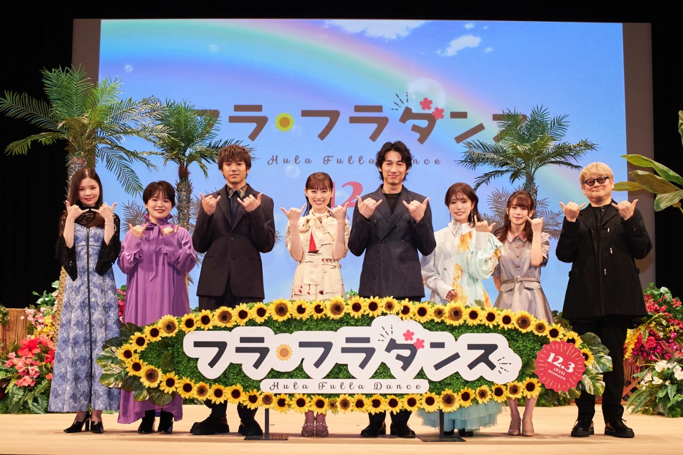 イベントには、福原遥、美山加恋、富田望生、前田佳織里、陶山恵実里、山田裕貴、ディーン・フジオカ、総監督の水島精二が登壇。さらには、会場には本物のフラダンサーたちもかけつけ、活気溢れるステージを披露。まさにフラダンスをテーマにした映画だからこそのスペシャルイベントになった。