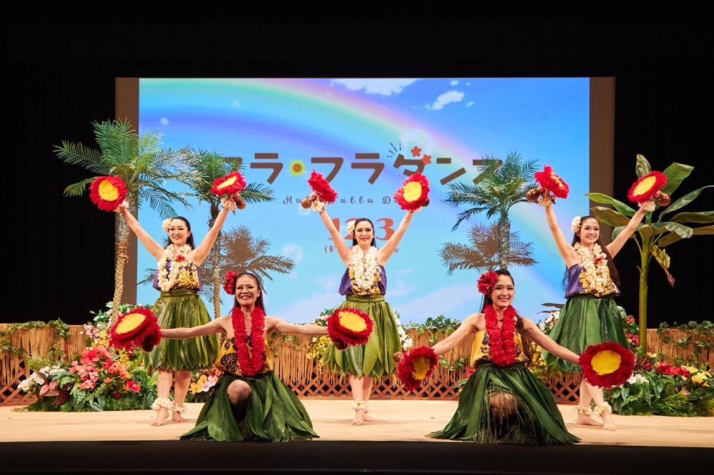 まず、福原が「アローハー! こういう大変な状況の中でこの日を迎えられて本当にうれしいです。そして、今日フラガールのみなさんのパフォーマンスを生で観ることが出来て、本当に感動して、あらためてフラダンスには人を明るくさせるパワーがあるなと思いました」と挨拶。続いて美山が「アローハー! 私も実は3歳の頃からフラダンスをやっていて、さっき披露されていた曲も小さい時本当に練習していたので、今でも踊りたくなるくらいでした」と語った。