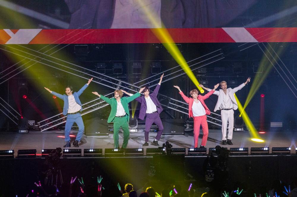 超特急の出番になりOvertureが流れると、ペンライトが鮮やかに会場を照らし、メンバーカラーのスーツを着た超特急が登場。