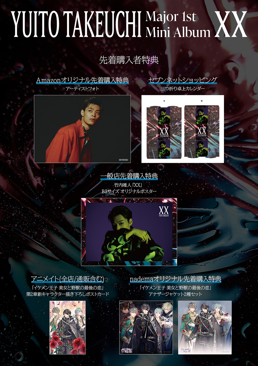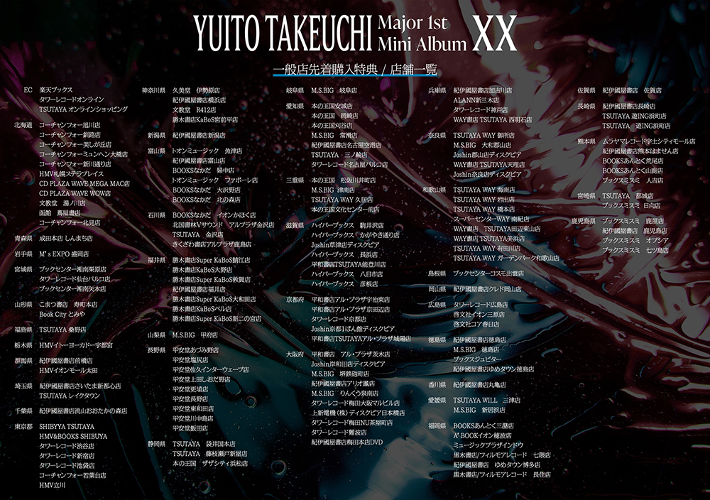 そして、12月1日にリリースされる竹内初のミニアルバム『XX』の発売記念イベントおよびCDショップ別購入者特典の絵柄が発表された。