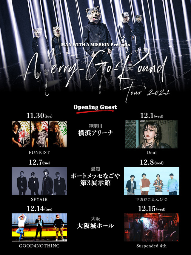 なお、MAN WITH A MISSIONは、11月30日の横浜アリーナ公演を皮切りに全国3都市6公演のアリーナツアー『MAN WITH A MISSION Presents「Merry-Go-Round Tour 2021」』を敢行する。