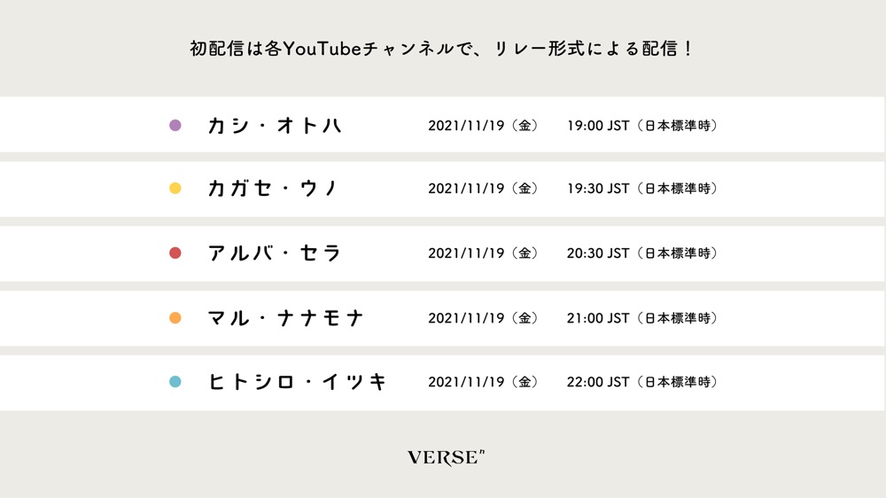 『VERSEn』は、様々な物語を巡るVTuberプロジェクト。ライブ配信・アニメ・音楽・イラスト・小説・漫画などのコンテンツをクロスメディアに展開し、ユーザーと共に『VERSEn』の世界における過去・現在・未来を物語として紡いでいく。