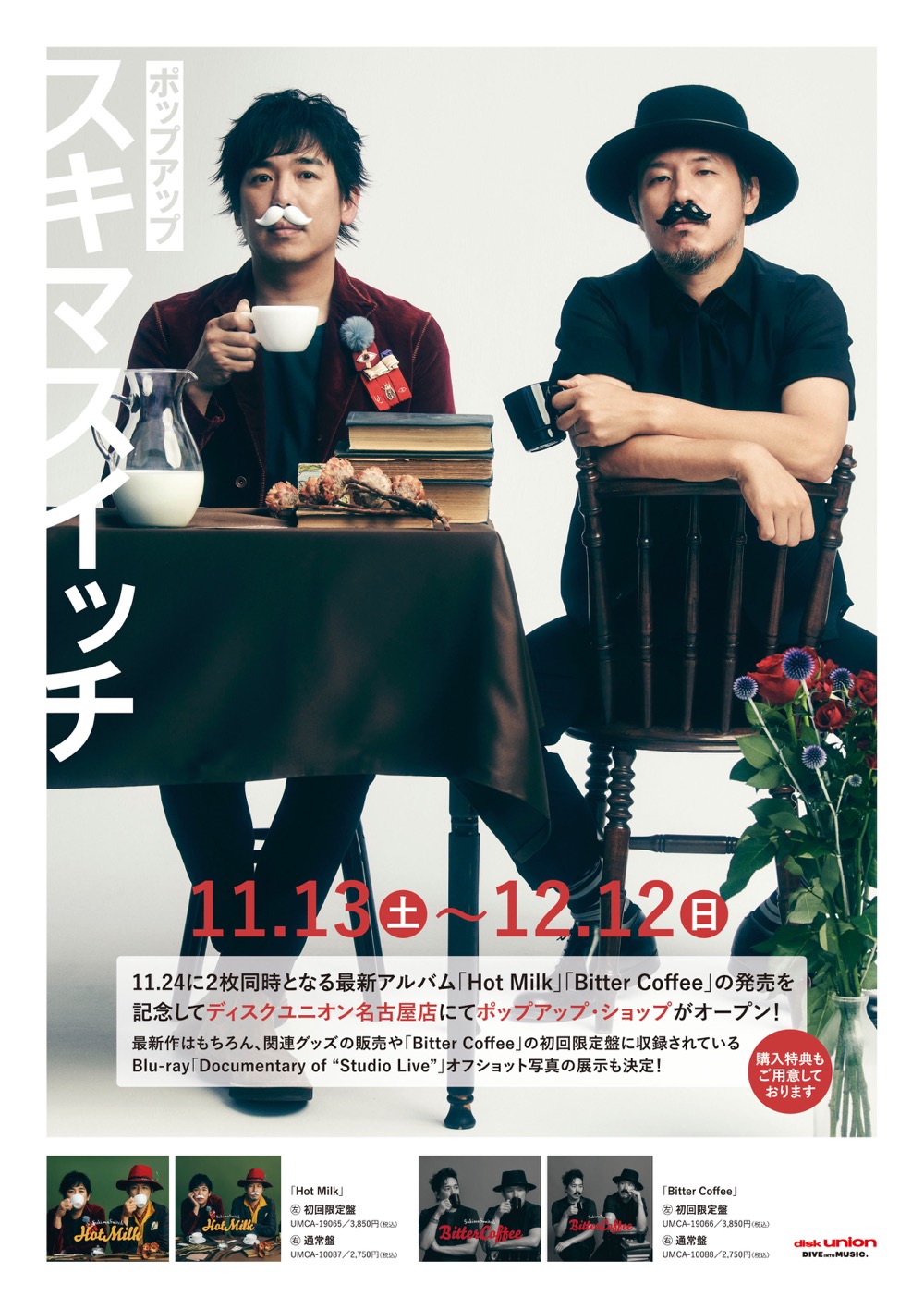 また、アルバム発売を記念して、ふたりの地元であるディスクユニオン名古屋店にて、『ポップアップ・スキマスイッチ』(ポップアップショップ)が期間限定でオープン。『Bitter Coffee』の初回限定盤に収録されるBlu-ray『Documentary of “Studio Live”』のオフショット写真が展示され、特別な購入特典も用意される。