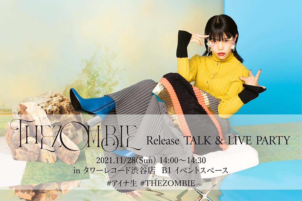 また、アルバム『THE ZOMBIE』の発売を記念したリリースイベント『THE ZOMBIE Release TALK & LIVE PARTY』が、11月28日に東京・タワーレコード渋谷店にて開催されることが決定。これまで「#アイナ生」と銘打ち、リリース記念の生配信を行ってきたが、4回目となる今回は、待望のリアルイベントでの開催となる。イベント参加方法など詳細はオフィシャルサイトで確認しよう。