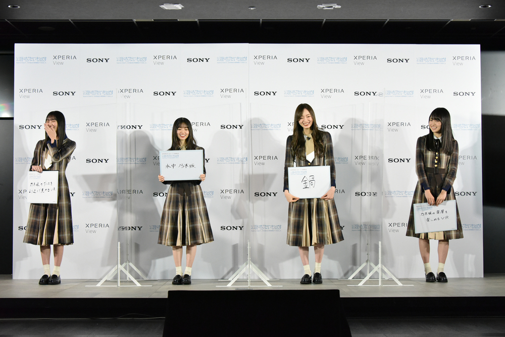 メンバーがオリジナルVRコンテンツの見どころや撮影秘話を紹介したほか、齋藤飛鳥と梅澤美波は実際にXperia Viewを装着して、自身が出演するオリジナルVRコンテンツを体験した。