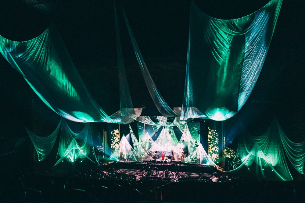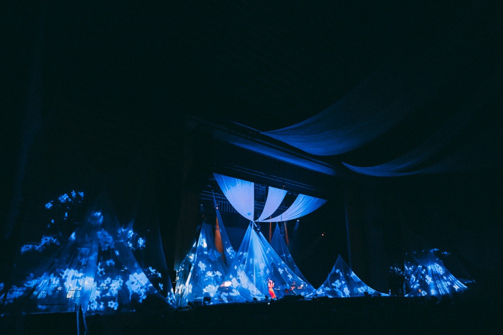 その夢の舞台を見届けようと多くのオーディエンスが会場に詰め掛け、開演前から期待と緊張感が混ざった独特の空気が流れていた。会場が暗転しSEが流れると、ステージに施された荘厳な紗幕にまるで深く静かな海の底にいるかのような美しい映像が映し出されサポートメンバーが登場。少し間を置き登場したUruは、深々とお辞儀をし、大きな拍手のあと、Uruとして初めて作詞・作曲した楽曲「今 逢いに行く」からライブはスタート。包み込むようなボーカルでゆっくりと聞かせたあと、彼女の代表曲のひとつとなった「プロローグ」で切ない空気感に彩ると、Awesome City Clubのカバーソング「勿忘」と、「いい女」を続けて披露し冒頭から会場を惹き込んでいく。