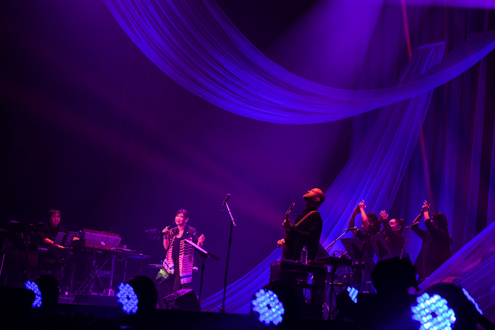 この東京公演のみの見どころとしてはまず、それらの楽曲を3人の女性コーラス、KAZCO、Dawn、Kayoとともに披露している点。15周年を機にスタートしたYouTubeの新コンテンツで初めて声を重ね、その手応えから実現に至った。