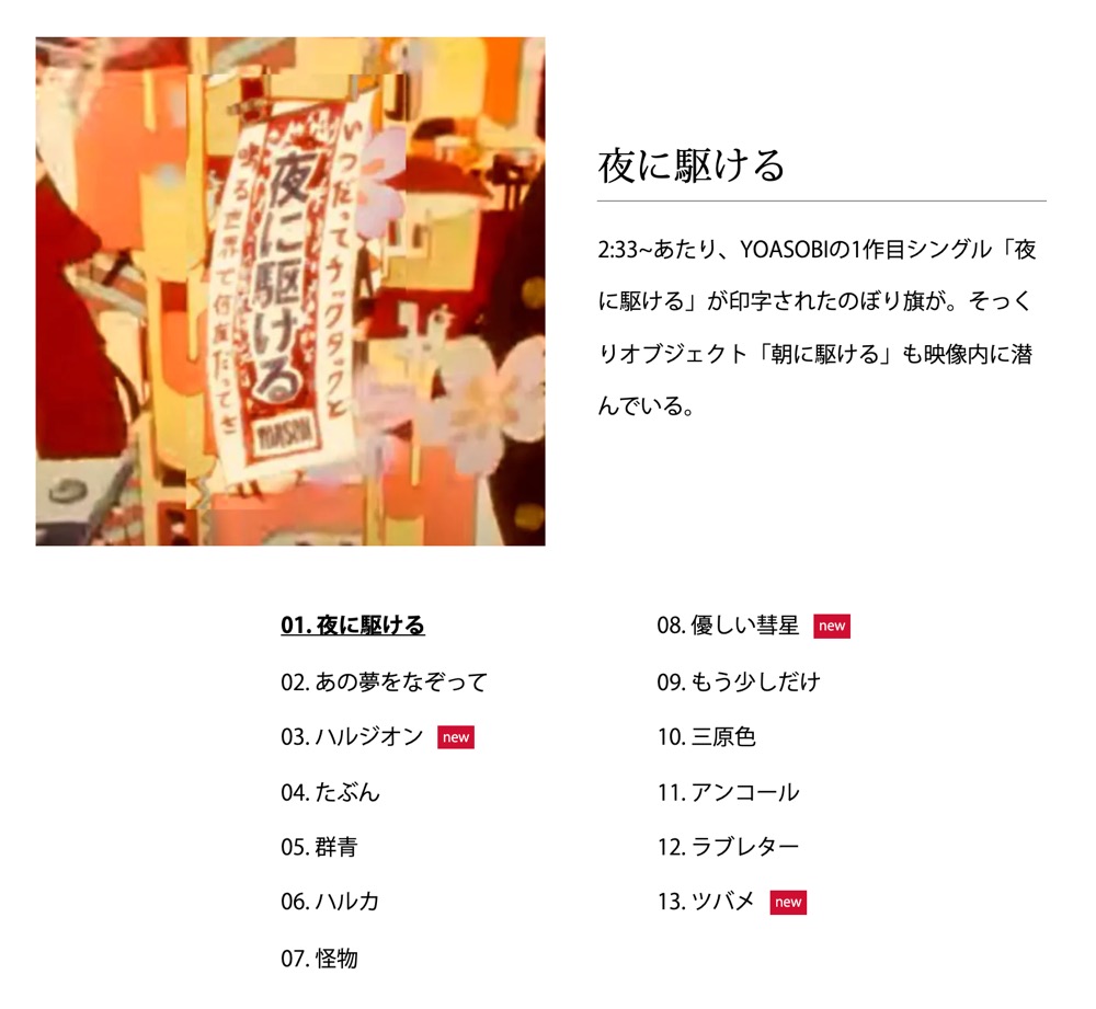 なお、「⼤正浪漫」公式VRスペシャルムービーには、YOASOBIのこれまでの楽曲13タイトルが隠しオブジェクトとして存在。ヒントは特設サイトにて公開中。いろいろな⾓度から楽しめるVR映像として、ぜひ隠しオブジェクト探しを楽しもう。