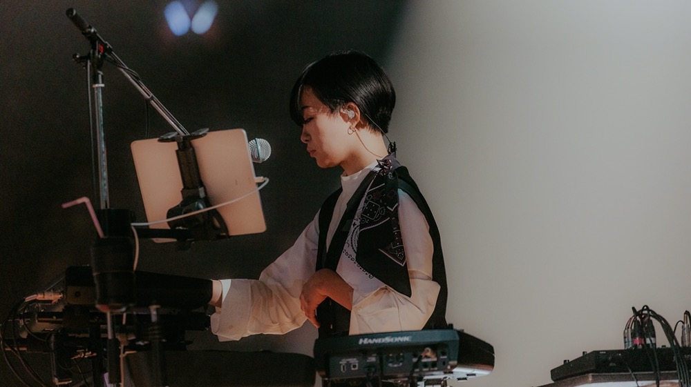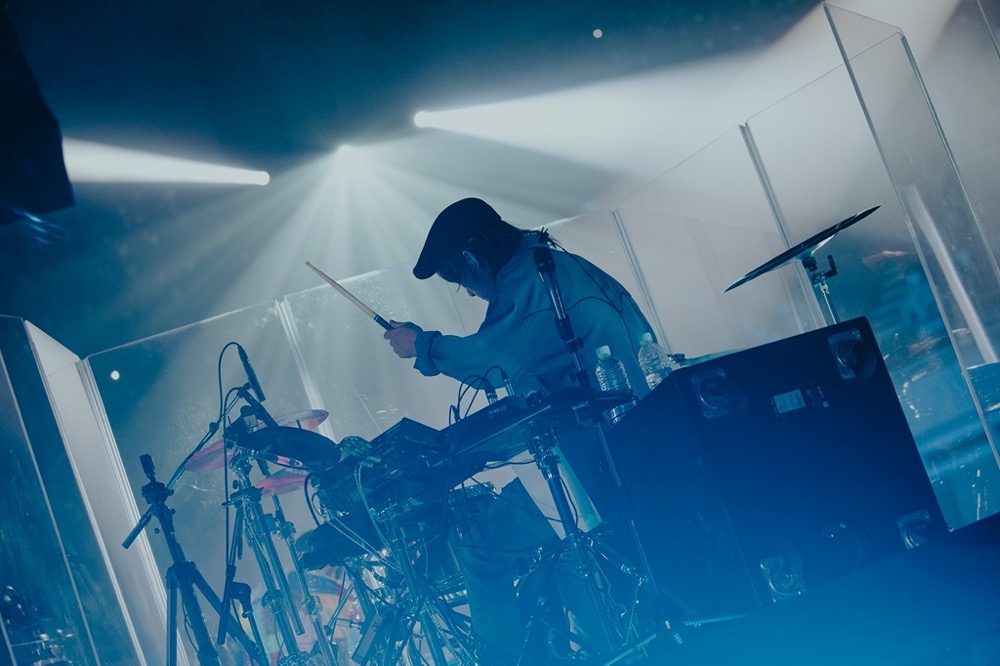 続いて届けられたのは、”Have a nice day”から始まる「もう少しだけ」。さらに「ハルカ」「たぶん」と語りかけるように歌を届ける。会場が暗転し、聞こえてきたのは朗読。同名の舞台に書き下ろされた楽曲「もしも命が描けたら」へと繋ぎ、ステージには歌詞がビジュアライズされる。物語を音楽にするユニットらしい、作品の世界観に惹き込まれるパートだった。
