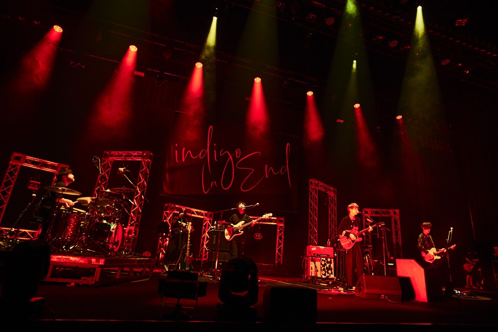 ここで再び映像が流れて、来年11月にバンド初の日本武道館公演が開催されることが発表されると、場内からは盛大な拍手が贈られる。「気負わずに、いつもどおりのindigo la Endのライブになると思うんですけど、楽しみにしていただけたらと思います」と川谷が話し、最後にもう一度インディーズ時代の楽曲である「楽園」がひさびさに演奏され、この日ならではの貴重なセットリストのライブが締め括られた。