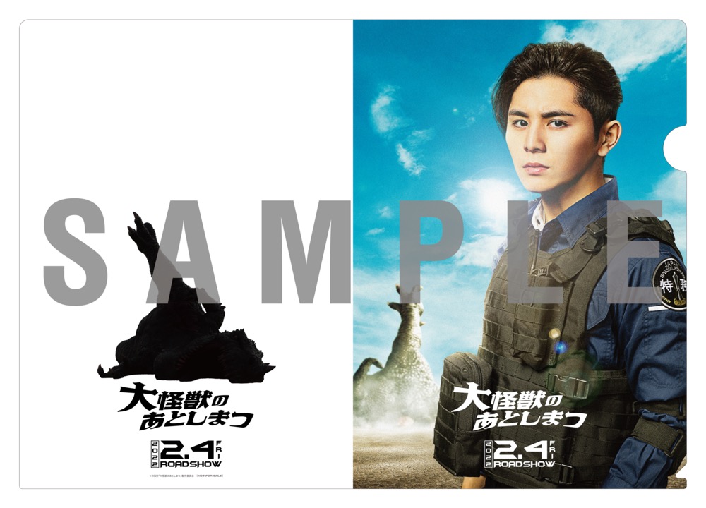 また、前売り券と全国3万枚限定で特製クリアファイル付き劇場前売券(ムビチケカード)の販売も決定。ムビチケカードと、特典「特製クリアファイル」のビジュアルが公開された。ムビチケカードには、巨大怪獣のスケール感が伝わる本作のティザービジュアルが使用されており、特製クリアファイルでは、表面に山田涼介演じる帯刀アラタのキャラクタービジュアルを使用、裏面には横たわる巨大怪獣がデザインされている。