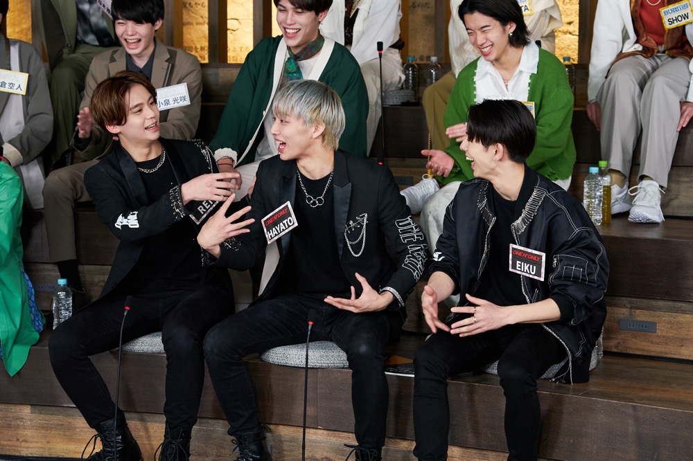各グループの選抜メンバー立ち合いのもと、前編ではONE N’ ONLY、SUPER★DRAGON、さくらしめじと3グループのライブ映像を視聴することに。南米に多数のファンを持ち、TikTokフォロワー数が380万人超えのONE N’ ONLYは、ポルトガル語での歌唱曲「L.O.C.A (PT-BR ver.)」の映像をチョイスして、それに「TikTokでよく聞く!」と田中洸希(SUPER★DRAGON)はすかさず反応。ちなみに、ハードな見た目と印象から「威圧感が凄い」とリョウガにいじられまくっていた彼らだが、高所恐怖症のTETTAはステージの2階が怖くて震えていたという意外なエピソードも暴露。また「ライブ中にお客さんと目を合わすのが苦手」というHAYATOからの相談に、カイが返したさすがのアドバイスも見逃せない。