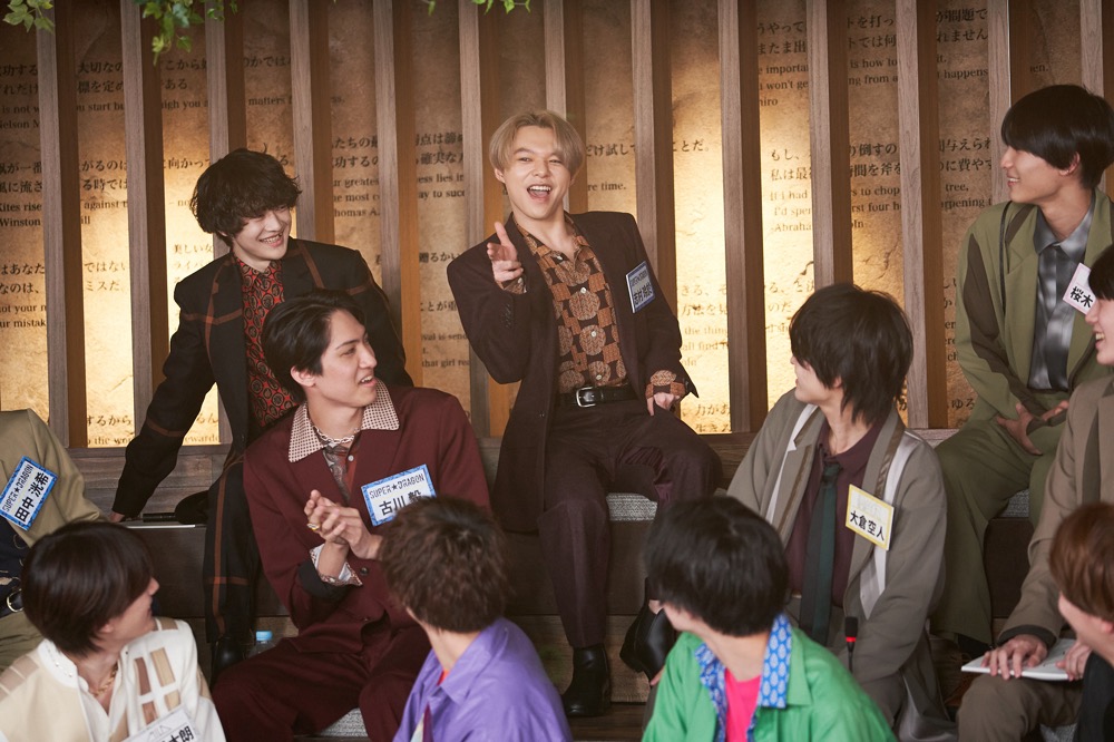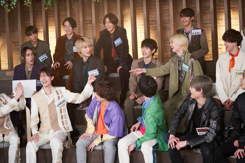 前後編共に3組のライブ映像視聴のあとは、各グループの“誰がいちばん○○でしょうか?”を発表。誰がいちばん緊張する、メンバーをいじる、大食い、せっかち、うるさい、人見知りと、さまざまな“いちばん”の中には、口をそろえて「でしょうね!」と全力で同意されるメンバーから、「嘘だ!」の声があがるメンバーまで。トーク中、参加メンバー内で最年少の桜木雅哉(原因は自分にある。)が一回り下であることに気づいて、担任ふたりが「ヤバい、ヤバい」と青ざめたり、逆に「同い年の和哉に、今日会うなり“金髪似合ってないよ”と言われた!」と杢代が告発したりと、グループを超えた年齢ネタも楽しい。