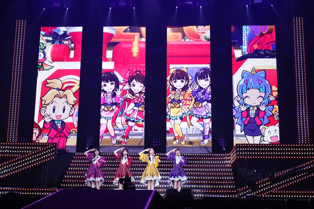 続けて百田夏菜子が『桃太郎電鉄』コラボ曲のパフォーマンス初披露を宣言し、『桃太郎電鉄 ~昭和 平成 令和も定番!~』のゲーム内コラボのテーマ曲となる新曲「BUTTOBI!』を初披露。『桃太郎電鉄』にちなんだ電車を表現するような振り付けや、楽曲の物語に沿ったかわいらしいパフォーマンスに、観客からは割れんばかりの大きな拍手が送られた。続けて陽気な『ももクロクリスマス』ナンバー「真冬のサンサンサマータイム」を披露しながらセンターステージへ移動。「デモンストレーション」「天国のでたらめ」と2曲連続で息の合ったダンスパフォーマンスを魅せつけた。ブロックラストとなるハイテンション楽曲「BIONIC CHERRY」では、ステージ上を縦横無尽に駆け巡り、会場の空気を最高潮へと盛り上げた。