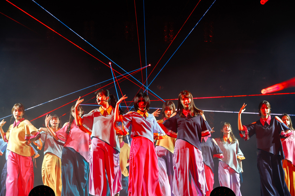 ライブ中盤では、前日の公演でユニット名が“ふたりな”であることを明かした井上梨名&松田里奈が、ユニット曲「On my way」を元気一杯に歌唱したかと思えば、3rdシングルのBACKSメンバーは小池美波がセンターを務める「ソニア」を全力で歌い踊り、「無言の宇宙」ではセンターの渡邉理佐を中心に唯一無二の空気感が作り上げるなど、緩急に富んだ構成で観客を惹きつける。